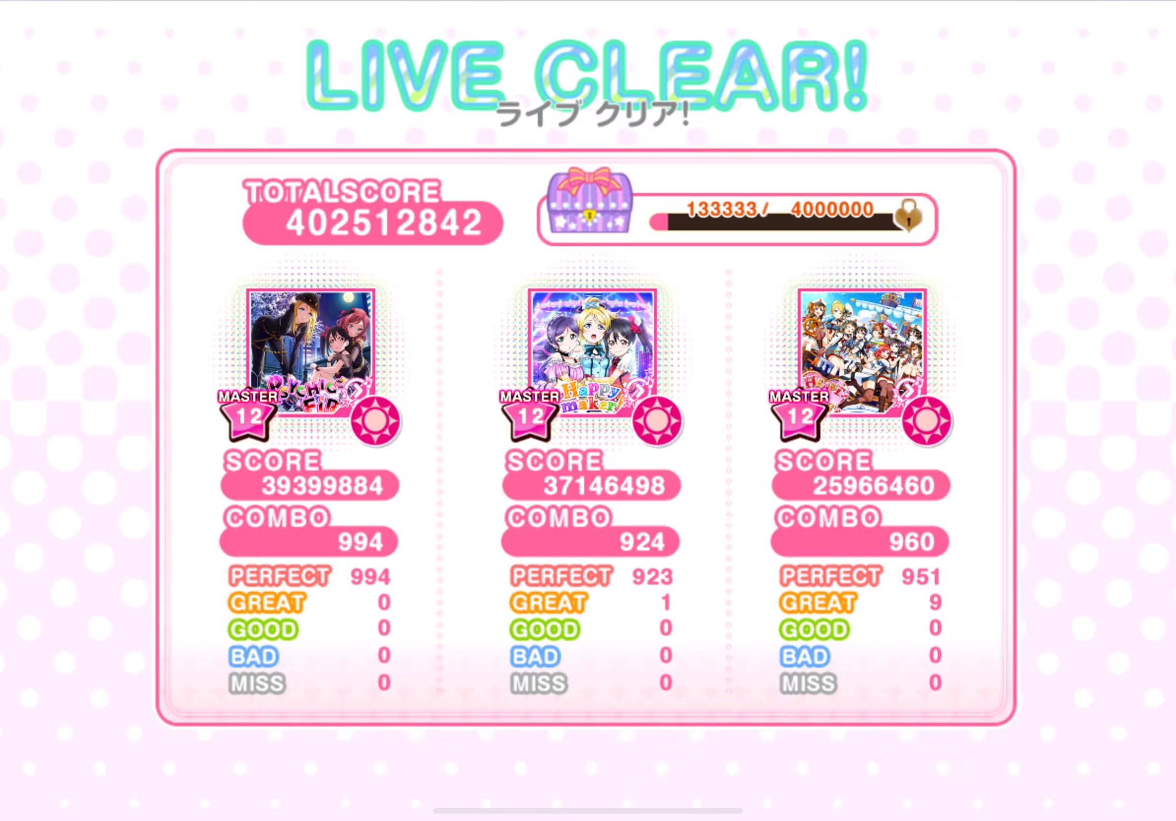 地利:本次CF活动,红歌组非常的牛び。哈图哈,心火,HM都是900n以上的歌,完全吊打其他颜色的歌组。并且还是μ的活动,正好给我10%加成