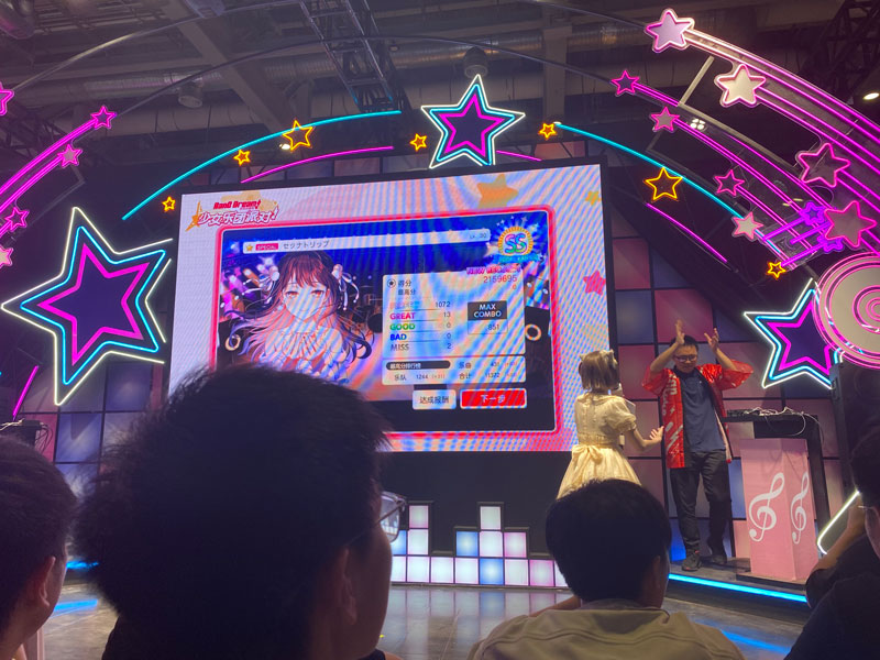 接下来就蹲到舞台那里,过了一会开始打歌活动。主持人说这个活动是给下午做准备,然后还说大家看我们现场有两台设备,于是很明显就可以猜到下午的节目是和音宝对邦!第一个人经历了两次复活打完以后,第二个人上去就是开花SP,不过比较可惜的是弹簧了)接下来右手边有个老哥一直在那喊选我我打30,然后主持人说左边有没有也能打30的,于是上去了一个打了sp hoh。但可能是设备或者不习惯,打的并不好。然后右边的老哥就上了,上去还说自己肯定打不过其他那些,结果....