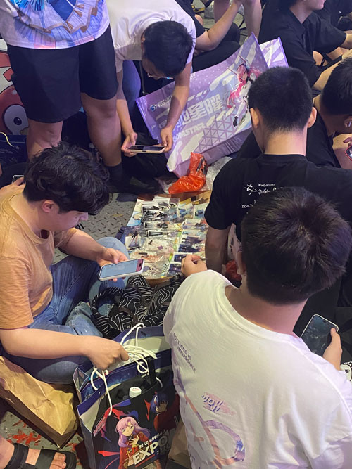 由于肉眼可见的人巨多,因此我们决定还是蹲到下午了。结果蹲的时候还有人在那里摆摊卖mygo的立牌,也不知道是什么操作