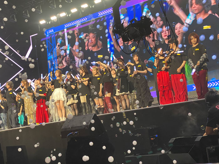 接下来樋口爱在唱恶魔之子的时候麦出问题了,一大段没声音,大家等这一块结束后都在喊退钱。结果后面樋口爱又重新上来重新唱了一遍,可以说紧急处理的也算比较好了。最后时间胶囊的时候有个大灯一直在照我们这里,非常瞎眼,结果整场结束以后有工作人员给我们被照的区域的每个人都送了一包周边补偿。这次时间胶囊感觉还是比去年的效果差些,有好些歌都改编的很难认出原曲,比如butterfly我都是到最后的oh my love才听出来。另外还有一点倒不是他的问题,sh的时候我第一排完全看不到场内变色)但今年因为已经提前有心理预期了,所以call sh还是顺利,有点开心。